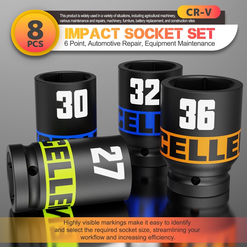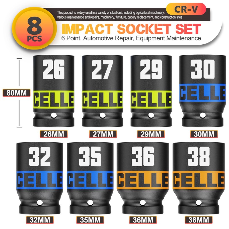 - The impact socket set is suitable for all kinds of large equipment maintenance and assembly,while is ideal choice for any home maintenance, garage and automobile repair, DIY home improvement