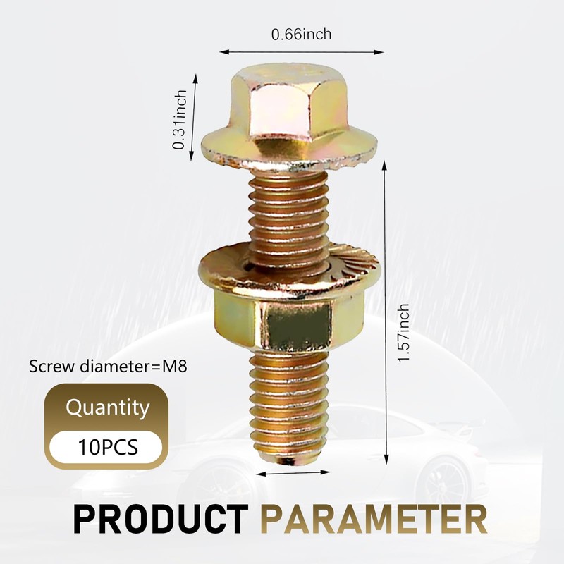- 10-Piece Bolt Kit: Includes 10 hexagonal flange nuts (0.7×1.45 inches) with matching bolts—smooth, burr-free surfaces ensure safe operation and reliable installation; compact packaging stores easily in toolboxes.
