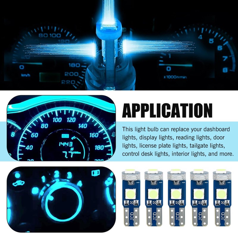 - Versatile Usage: Suitable for a wide range of applications, these bulbs can be used as dashboard lights, side lights, indicator lights, instrument lights, air conditioning indicator lights, center console lights, and interior lights.