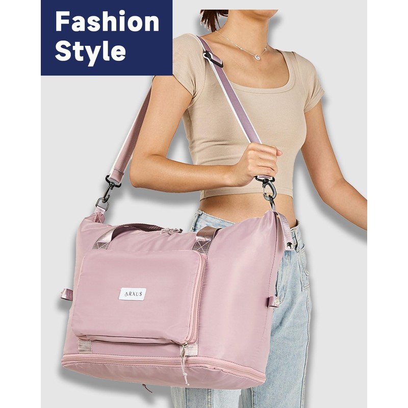Arxus Foldable Duffle Bag with Detachable Shoulder Strap, 35L Expandable Waterproof Tote Bag for Women, Weekender Carry On Bag for Airline Travel, Gym Bag Overnight