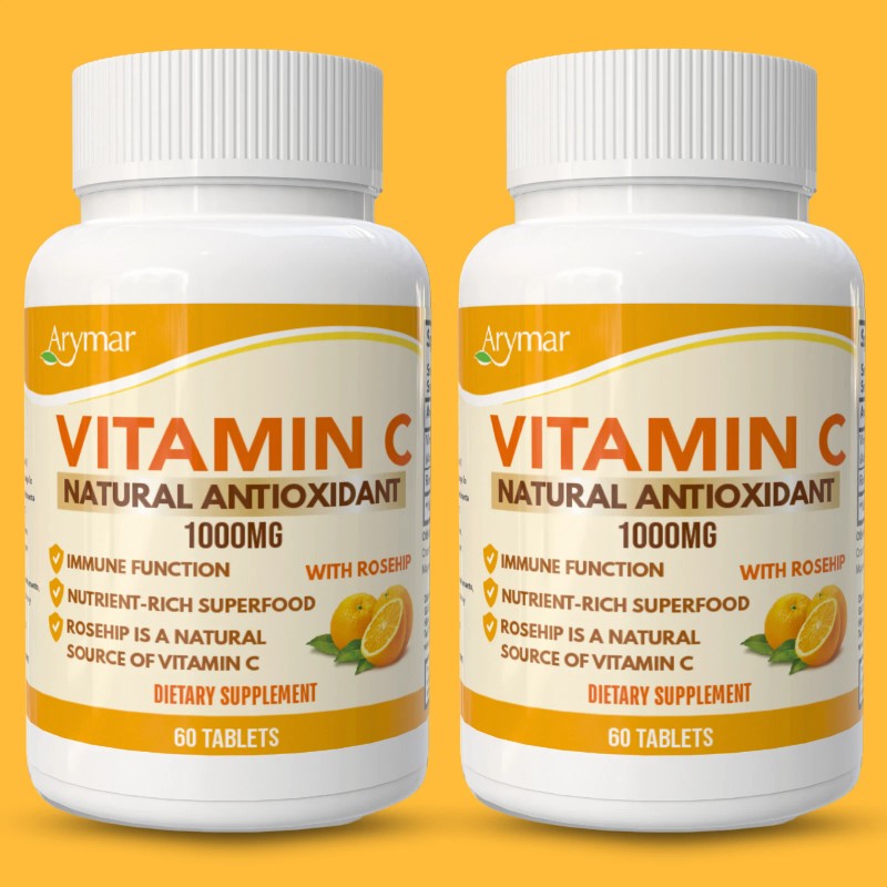 Arymar Vitamin C 1000 mg with Rosehip, Antioxidant Formula– 60 Tablets (2-Pack)