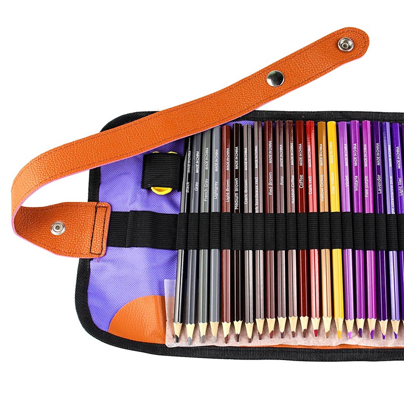 - 72 Individually Slotted Black Canvas portable folding bag that offering the maximum protection and organization for your art pencils and accessories. Very convenient to use your colored pencils for school work, outdoors sketch, or vacation drawing.