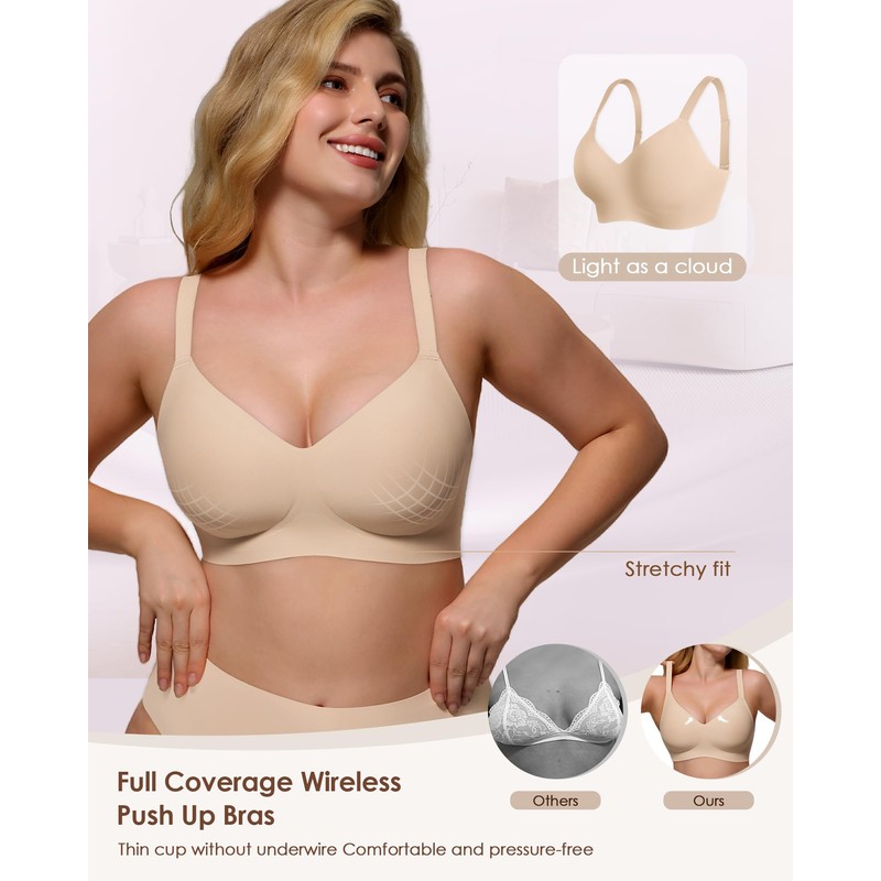 As Fairy Comfort Wireless Lift Bra for Women - Smooth Full Coverage Push Up Bras for Everyday Wear Nude 36DDD
