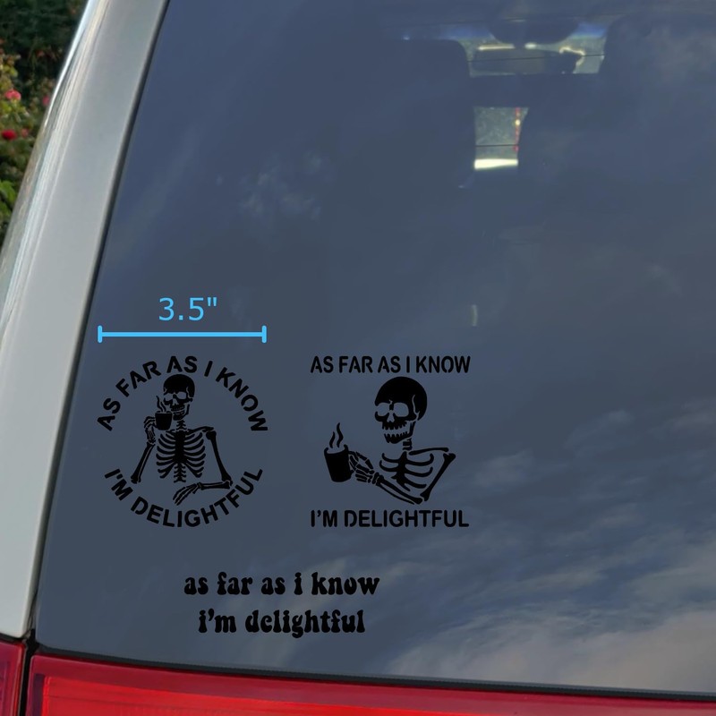 As Far As I Know, I’m Delightful Decal 3 Pack: Skeleton I’m Delightful Decals for Car, Tumbler, Laptop (Black, Small ~3.5")