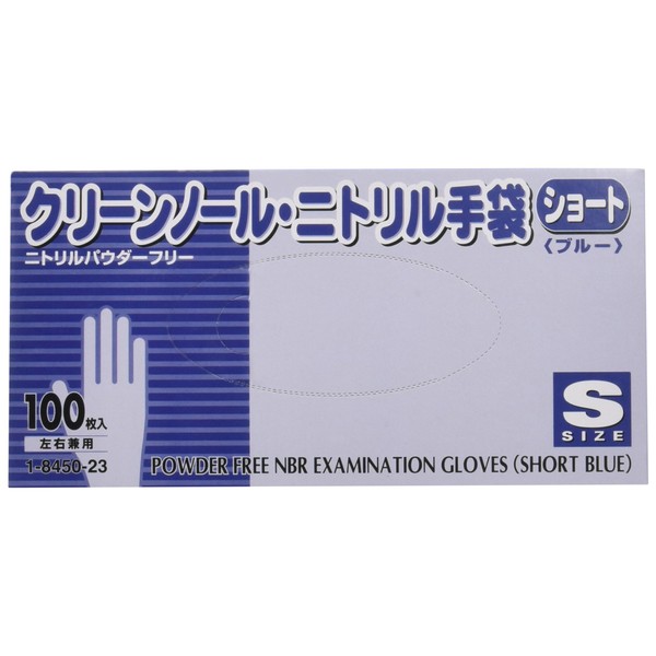 As One Clean Knoll Nitrile Gloves, Short (Powder Free), Blue, S, Pack of 100
