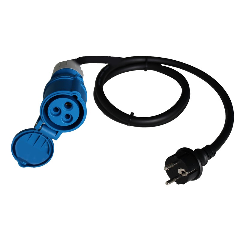 Mit 1,5 m schwere Gummischlauchleitung Typ H07RN-F 3G2,5 Mit CEE-Kupplung (230 V / 16?A) und Schutzkontaktstecker. Entspricht VDE 0100.