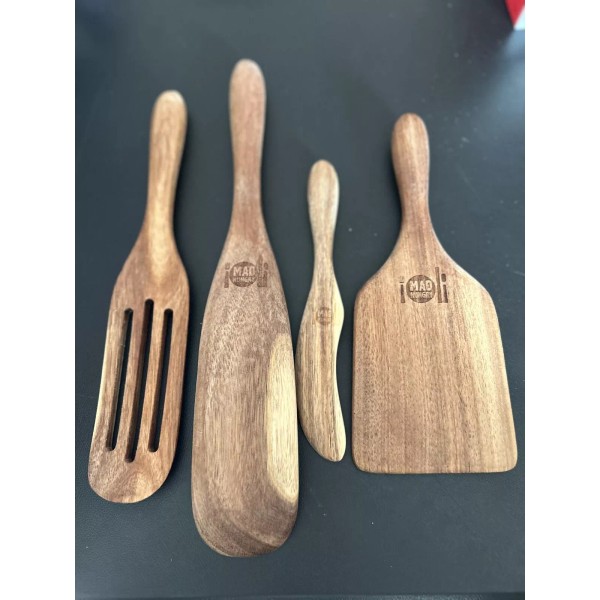 As Seen On TV Mad Hungry 4 Piece Acacia Wood Spurtle Set Kitchen Cooking Multi-Tool NEW