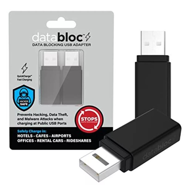 - EASY TO USE: Simply plug your regular USB charging cable into the Databloc. Then plug the Databloc directly into the public USB charging terminal for a worry free power connection. Works with all of your USB (A) devices.