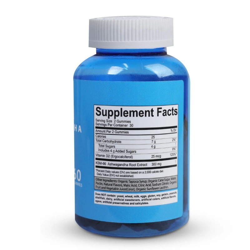 - Ingredients: Ashwagandha, Citric Acid, Lecithin, Malic Acid, Pectin, Sodium Citrate, Sugar Cane (Saccharum officinarum)
