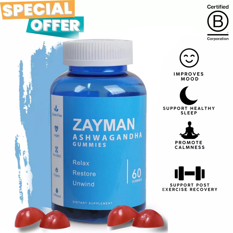 As Show ZAYMAN Nutrition Ashwagandha Gummies Mixed Berry 60 gummy 2PCS