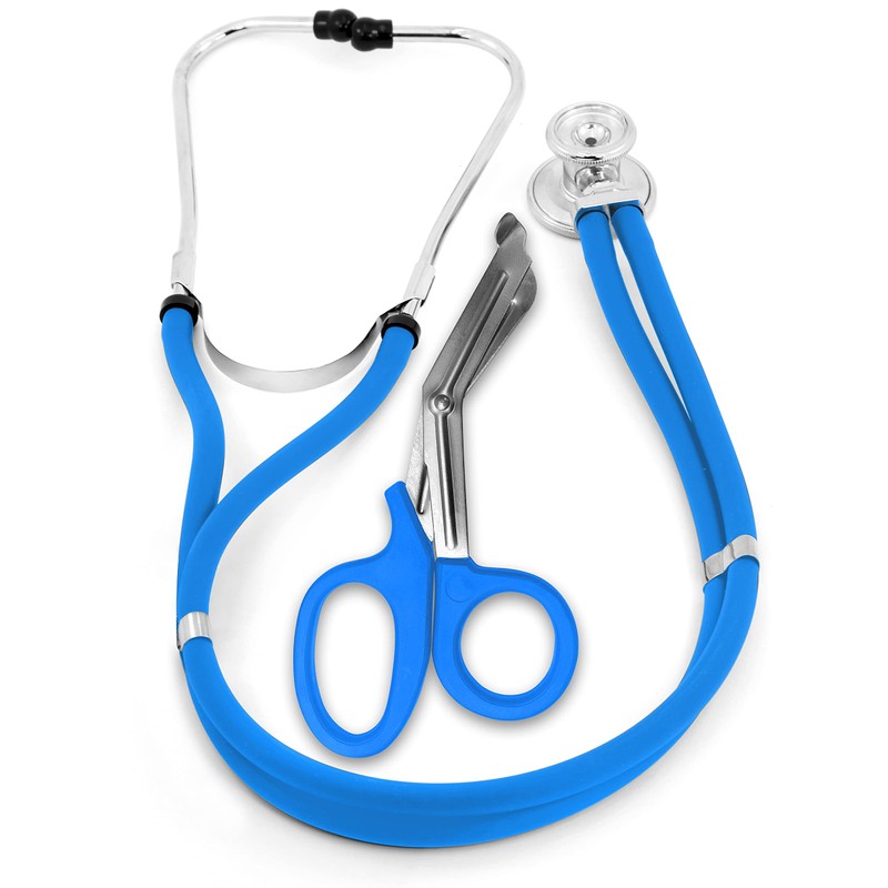 ASA TECHMED Sprague Double Tube Adult and Pediatric Stethoscope + Matching EMT Shears, Ideal for EMT, Nurse, Doctor, Medical Student, Paramedic, and First Responders (Sea Breeze)