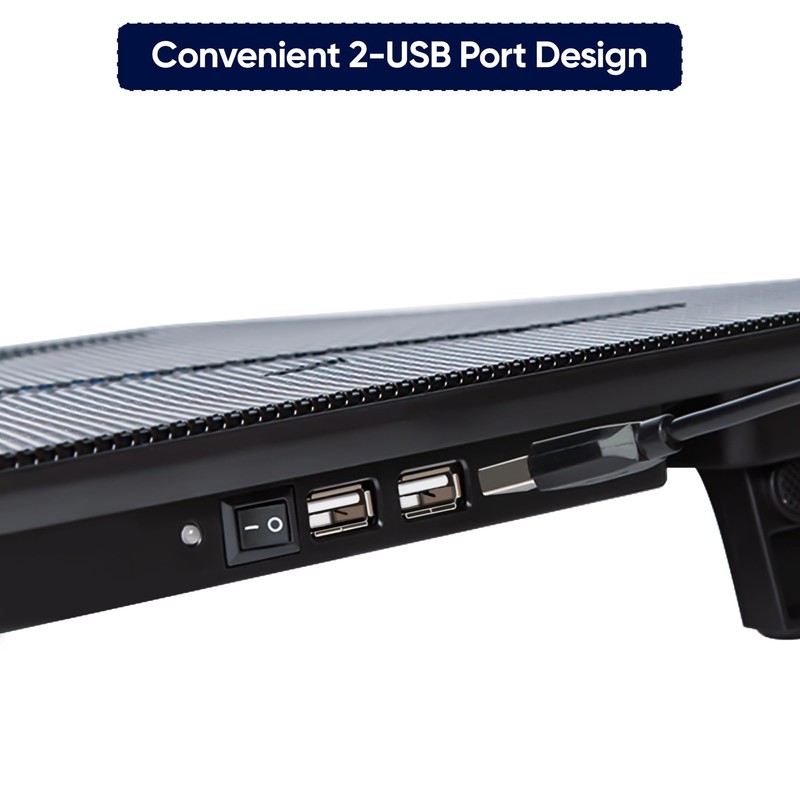 Equipped with dual USB ports, our cooling pad for gaming laptop enhances convenience. One port powers the cooling pad, while the other lets you connect peripherals such as a mouse or keyboard. This additional connectivity streamlines your workspace, whether you're charging a device or optimising your setup for productivity.