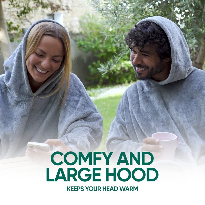 - COMFY LOUNGEWEAR HOODIE - The fleece hoodie blanket is the perfect accessory for all your home needs. Whether you’re reading in bed or playing video games with children, this giant sweatshirt will keep away any cold air while still allowing freedom of movement.