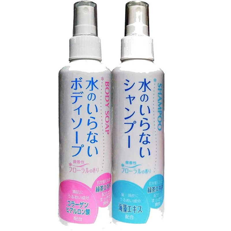 - Set of 2 types of "waterless shampoo and body soap" that easily wipes away the scalp and skin odors and dirt without any water