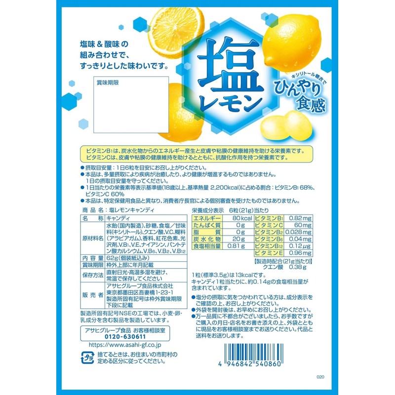 Asahi Group Food Salt Lemon Candy 2.1 oz (62 g) x 6 Bags