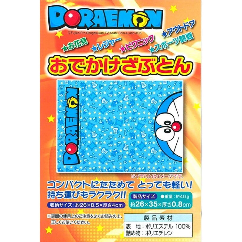 Asahi Koyo Doraemon Portable Cushion, Compact Cushion, Foldable, For 1 Person Blue, Length 13.8 x Width 10.2 inches (35 x 26 cm), Thickness 0.3 inches (8 mm), Convenient to Carry