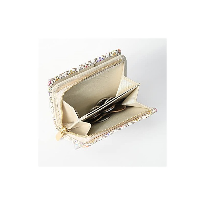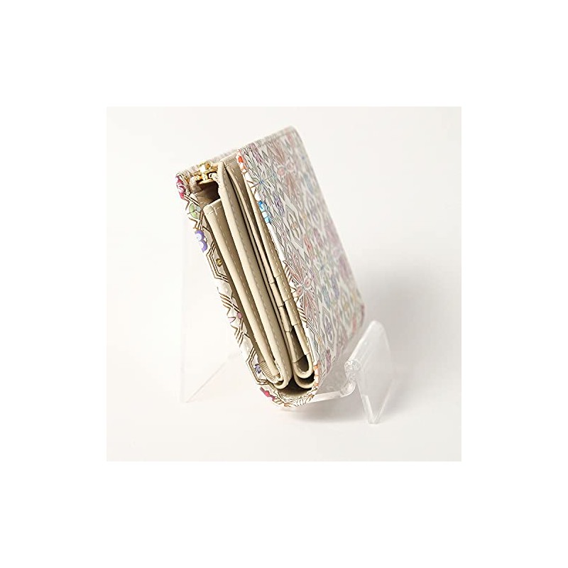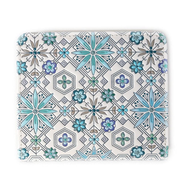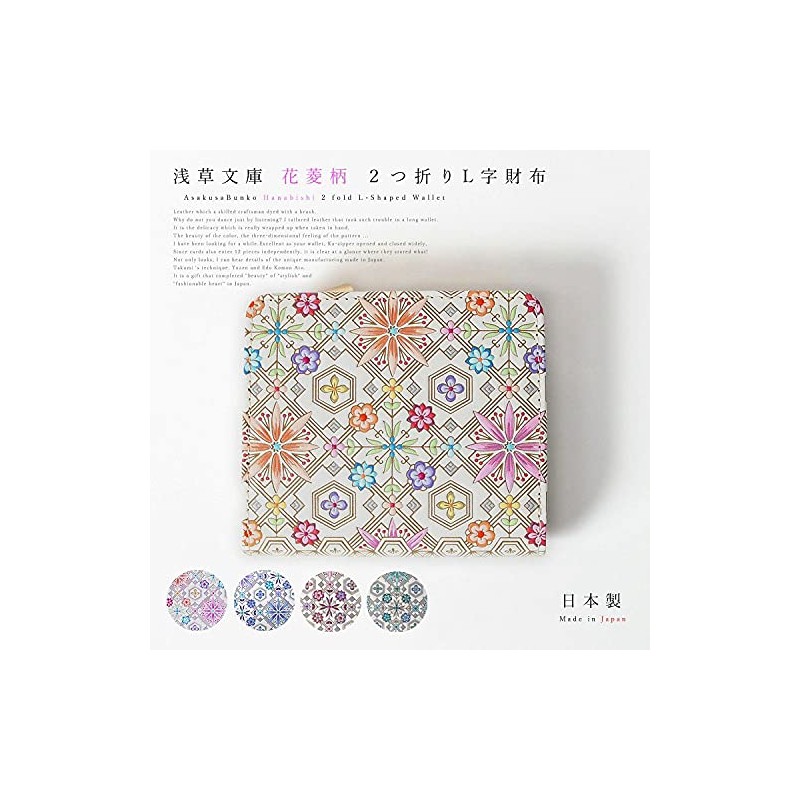 Asakusa Bunko Yuzen Dyeing Bi-Fold Wallet, L-Shaped Zipper, Hanabishi, Hanabishi, Pattern, Edo Komon, Bifold Mini, pale green