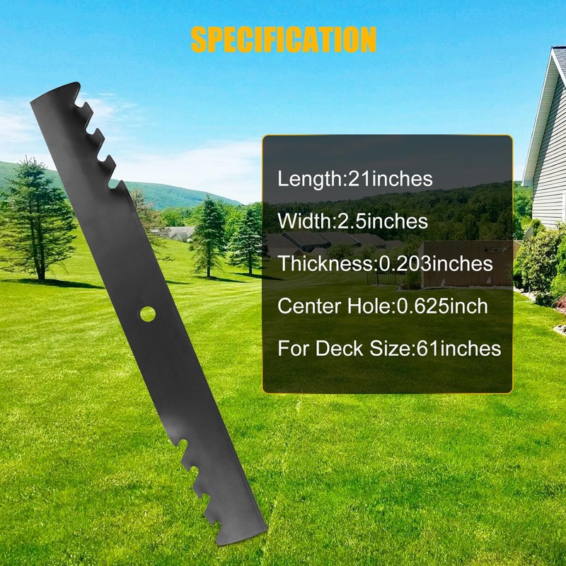 - Specifications:The product dimensions: Length: 21 ,Center mounting hole: 0.625 ,Cutting Deck Size: 61