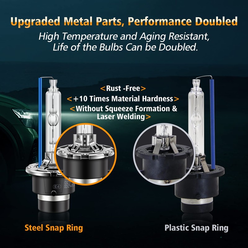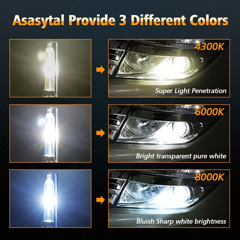 - Upgraded metal base: Asasytal D2S Xenon Bulb 8000K 35W bulbs upgraded version are made of metal stents, wire and quality material with up to 99.9% Xenon purity, provide better heat dissipation enviroment and lighting performance more stable. To prevents evaporation and atomization from lighting at high temperatures and reduce the chance of rain leakage and short circuit occurs, guard your safe.