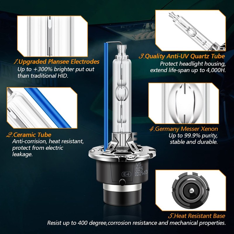 - Energy saving: Swifter light-up than original xenon lamps, 35% saver energy consumption, reduce unnecessary electricity and gas petrol for your car. Greatly extended the service life of the lamp up to 4000 hours.