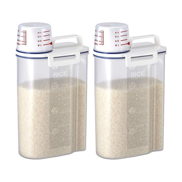 Asbel Clear Rice Bin 6.6 fl oz (2,000 ml), Sealed Rice Bin 4.4 lbs (2 kg), Pack of 2