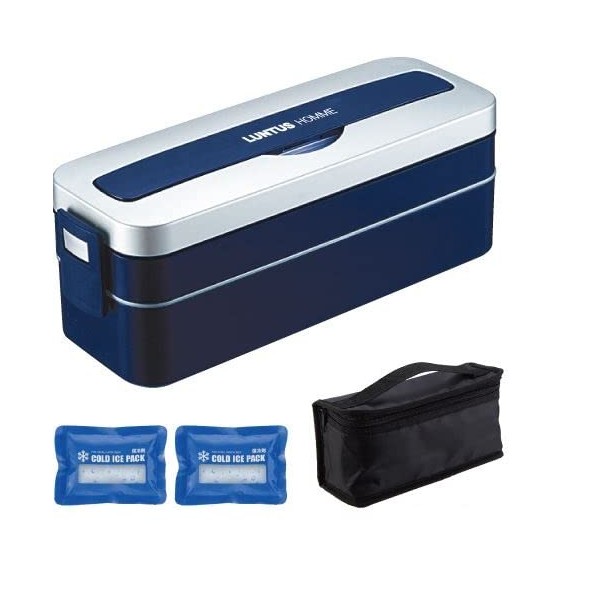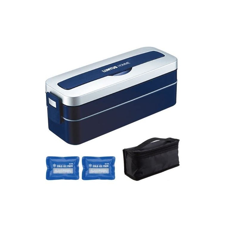 Asbel MC-T800C Smart Lock Lunch Box with Ice Pack Bag, 2 Tiers, Silver