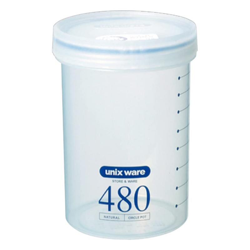 Screw-type lid and removable gasket for superior sealing Products of the same diameter can be stacked. Volume: 18.9 fl oz (480 mL); Size: 3.5 x 4.7 inches (89 x 120 mm); Material: Body, Lid: Polypropylene (polypropylene), Gasket: Silicone rubber; Graduated (3.9 fl oz (100 ml) increments) Silver ion antibacterial processing; *Please remove the lid when heating in the microwave.