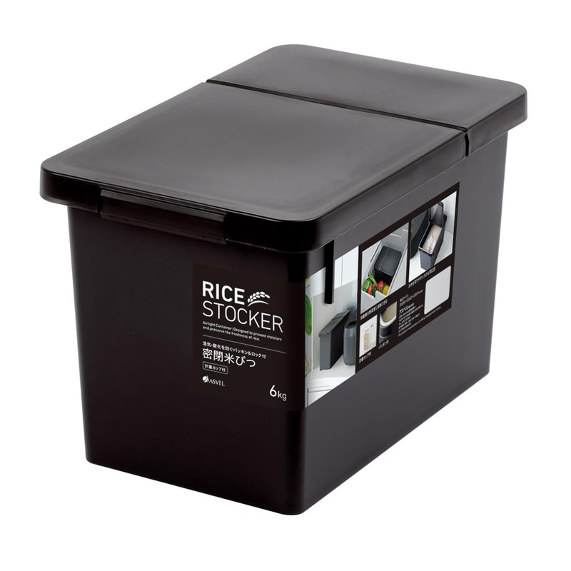 Asbel S Sealed Rice Bottle, 13.2 lbs (6 kg), With Seal, Lock, Simple, Interior, Stylish, Black