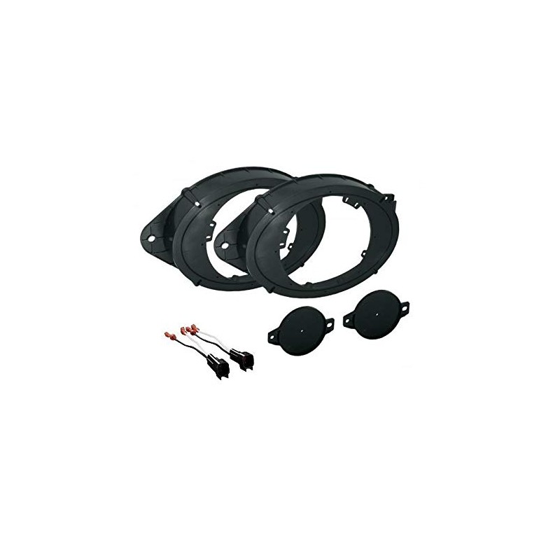 - Use to add aftermarket speakers to factory door location. Water resistant. Sturdy plastic. Includes 1 pair for 2 front doors- 2 speaker plates and 2 speaker wire harness.