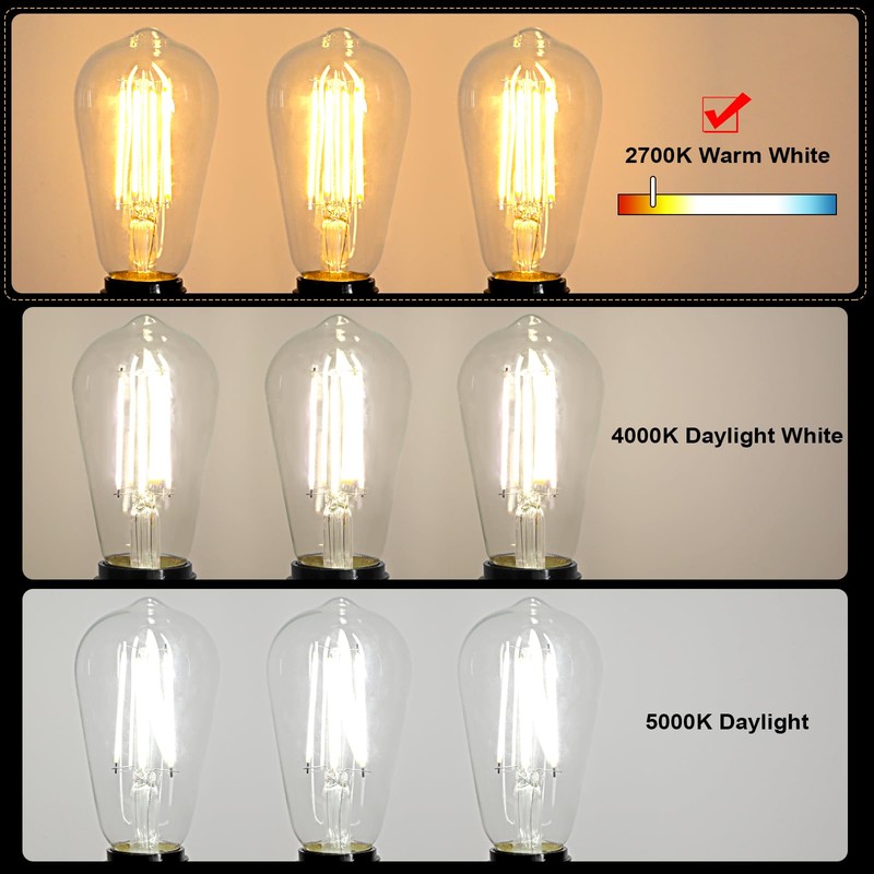 - Excellent Performance: The LED filament bulb turns on at full brightness with brightness 700 lumens and 2700K soft warm white light. Low power consumption provides over 20,000 hours lifespan, reducing re-lamp frequency