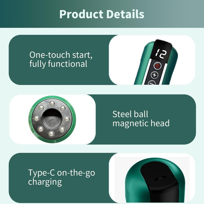 - Anti Cellulite Massage Tool: Equipped with advanced vibration technology, it effectively breaks down fat deposits, improves blood circulation, and reduces the appearance of cellulite.