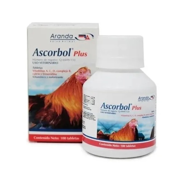 Descubre Ascorbol Plus, un suplemento en tabletas que viene en una presentación de 100 unidades, diseñado para proporcionar un soporte vitamínico esencial a diversas especies animales. Este producto está formulado con una combinación de Vitamina C y Complejo B, nutrientes cruciales para el metabolismo, la energía y la resistencia general.