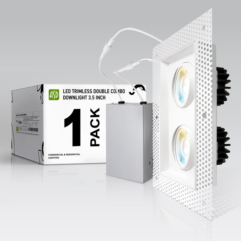 - ✅ TRIMLESS DESIGN - ASD LED combo downlight with multi-directional swivel heads produces a high light output with minimal glare as a result of its regressed light source. It includes a mud frame to be plastered over, giving it a smooth trimless look. It features durable airtight aluminum housing, multifaceted specular reflector with a 38° beam angle, and anti-glare PC lens