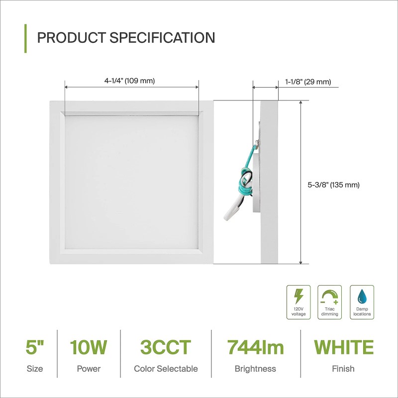 - Special Features: Original, CCT Adjustable Options, Energy Efficient, Instant On, Residential & Commercial Hardwired Illumination, Industrial & Company Grade, Overhead Surface Mounted Designer Style, Minimalist Design, Indoor Downlight Recessed Covering Fixtures, Vanity Celight