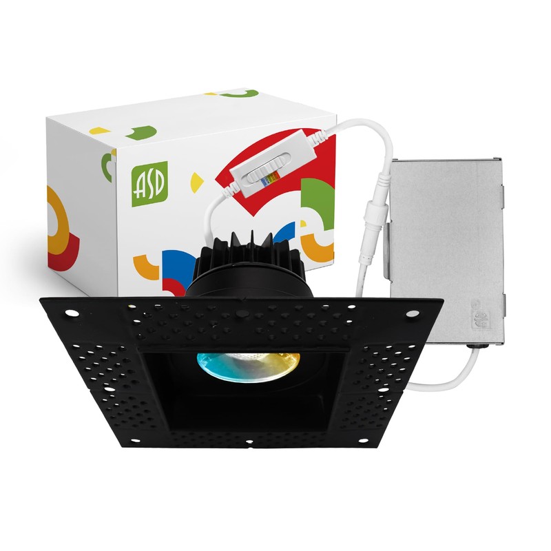 - ✅ DESIGN - ASD LED trimless recessed lighting has a twist-lock design and includes a square mud frame to be plastered over, giving it a smooth trimless look. Our square recessed lighting has a durable airtight aluminum housing, multifaceted specular reflector with a 38° beam angle, and anti-glare PC lens. This square LED ceiling light is designed to operate on 120V circuits with a TRIAC dimmable driver
