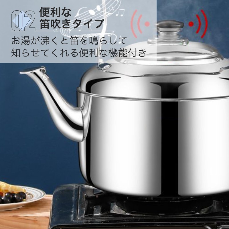 Asdays Kettle, 4 Liter, Gas & Fire, Compatible with All Heat Sources, Whistling Type, Yakan, Large Capacity, Outdoor Use, Stainless Steel (5L)