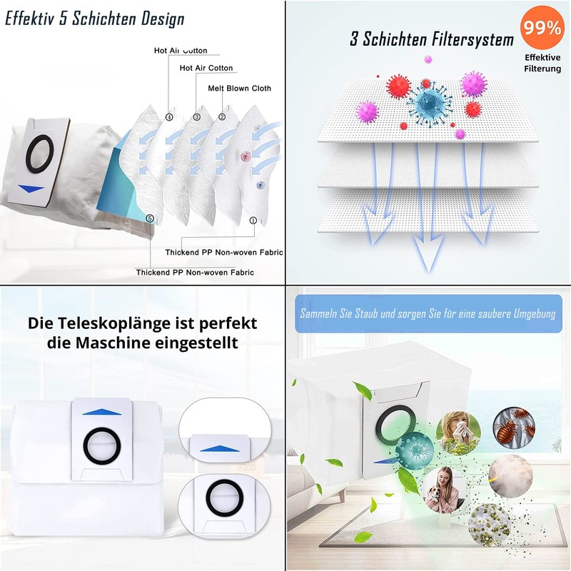 - ??Paket enthalten??1 Hauptb1rste f1r Ecovacs Deebot T20 Omni, 4 Graues Wischpad f1r X1 Omni, 4 HEPA-Filter, 4 Staubbeutel, 8 Seitenb1rste, 1 Reinigungsb1rste.