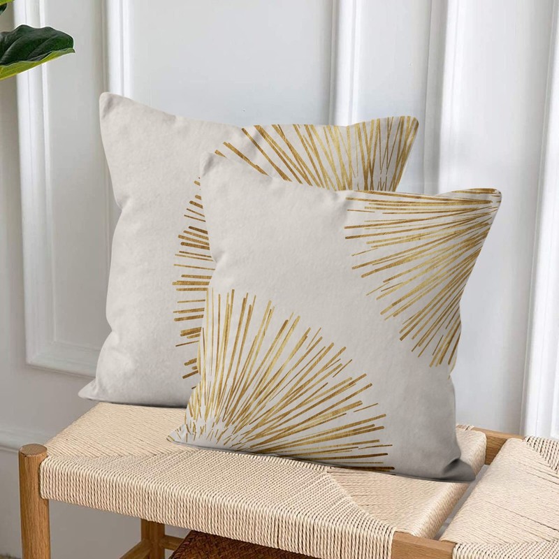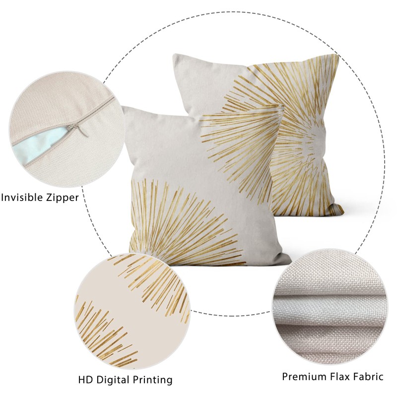 ASDCXZ Boho Cushion Cover 45 x 45 cm Set of 2 Modern Boho Style Gold Line Beige Sofa Cushion Cover Decorative Cushion Covers Washable Polyester Flax Textile Outdoor Cushion Cover