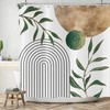 ASDCXZ Boho Shower Curtain 180x200 cm, Modern Abstract Art Boho Style Retro Sun Green Leaves White Bath Washable Shower Curtains Polyester Textile Waterproof Bath Curtain for Bathtub with 12 Hooks