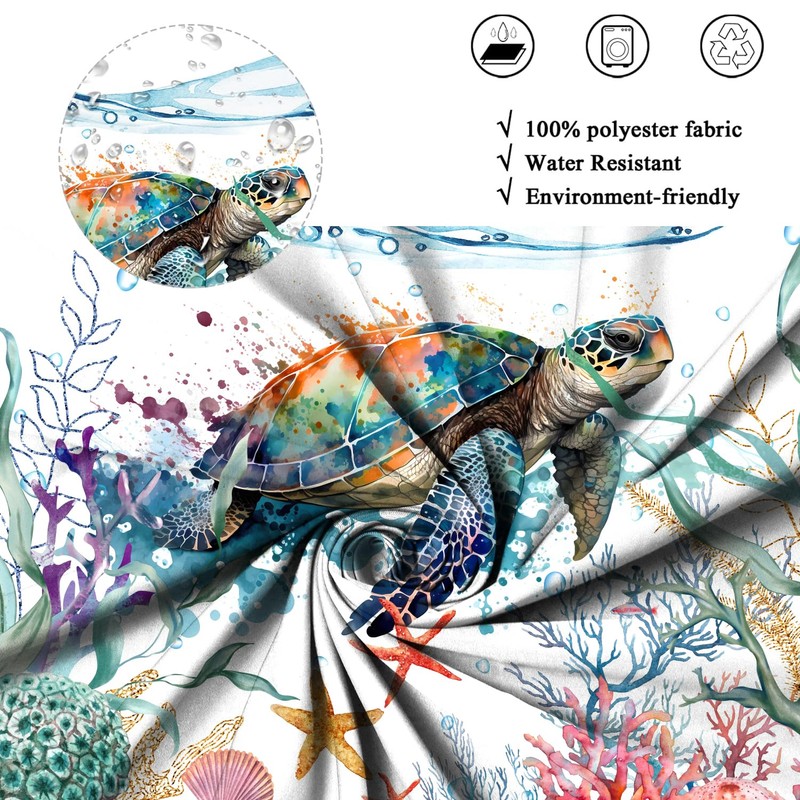 ASDCXZ Maritime Shower Curtain 180 x 180 cm, Watercolour Blue Sea Creatures Turtle Starfish Nautical Colourful Bathroom Washable Shower Curtains Polyester Textile Waterproof Bath Curtain for Bath with