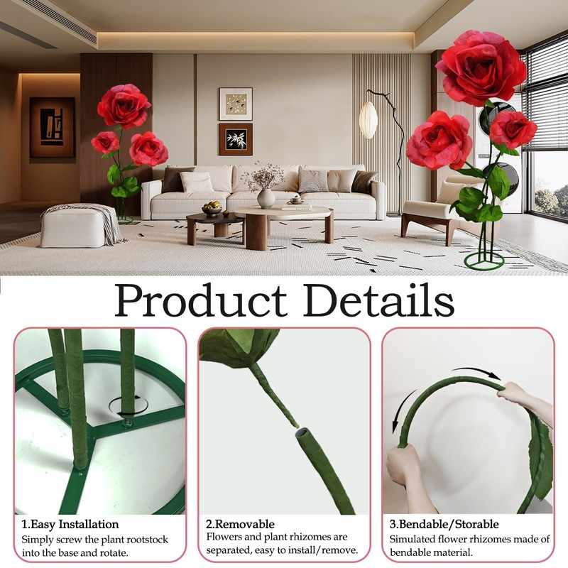 - Artificial Flower: Size(72.8H x 28.35L x 20.5W inch). Giant Artificial Flowers feature a realistic 3D simulation design that will add a touch of elegance to any space, ideal for home, garden or event decor.