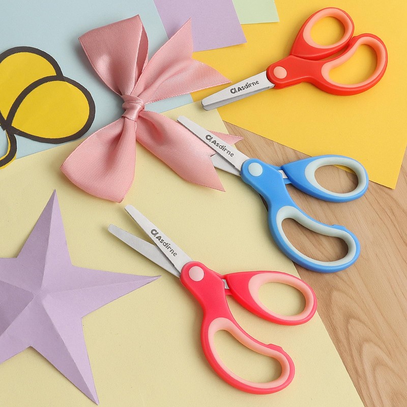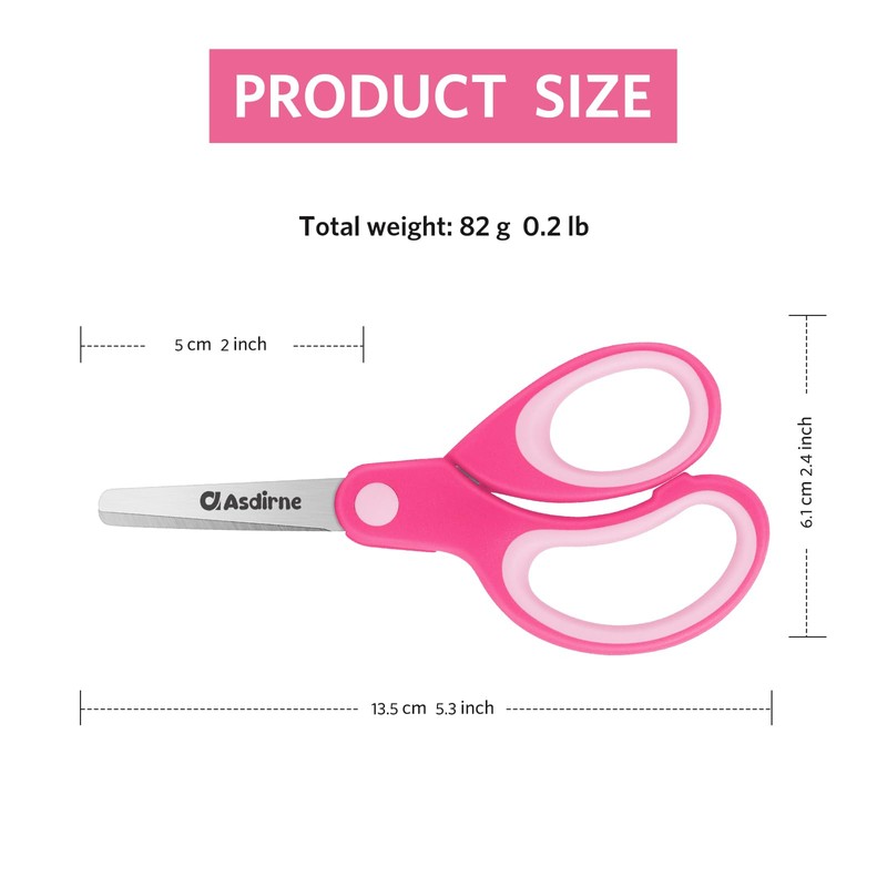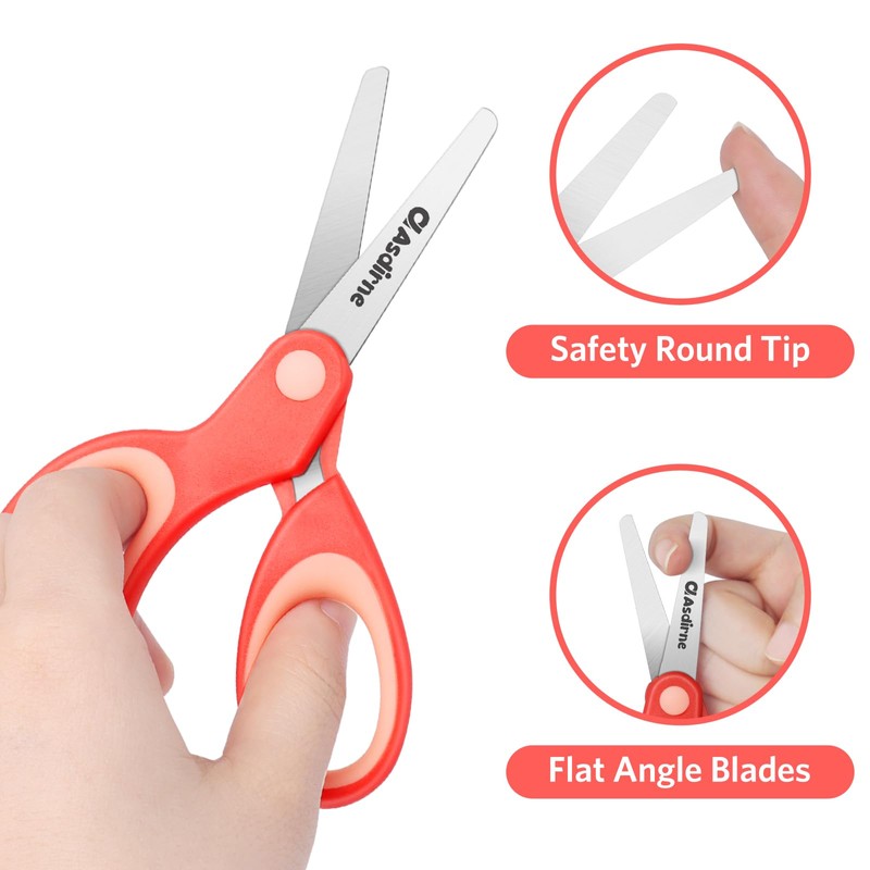 - Safety blunt tip. The obtuse angle design on the tip of the children scissors keeps children away from the risk of being stabbed.