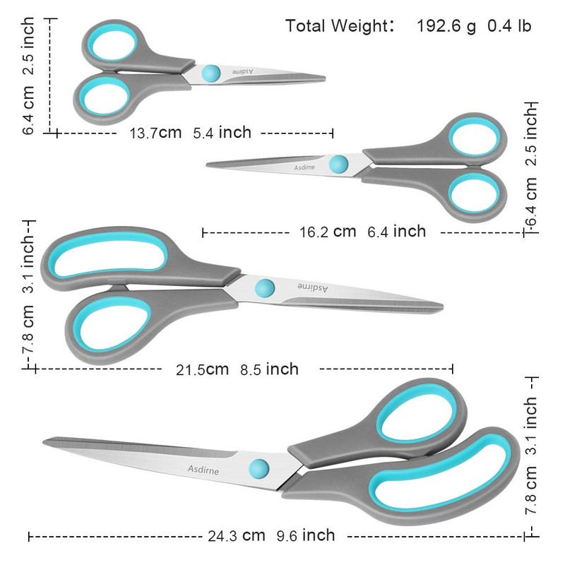 Asdirne Asdirne Schere, Klingen aus rostfreiem Stahl, Griff mit weichem Griff, Geeignet für Haushalte, Büros und Schulen, Blau/Grau, 4 Stück/Packung