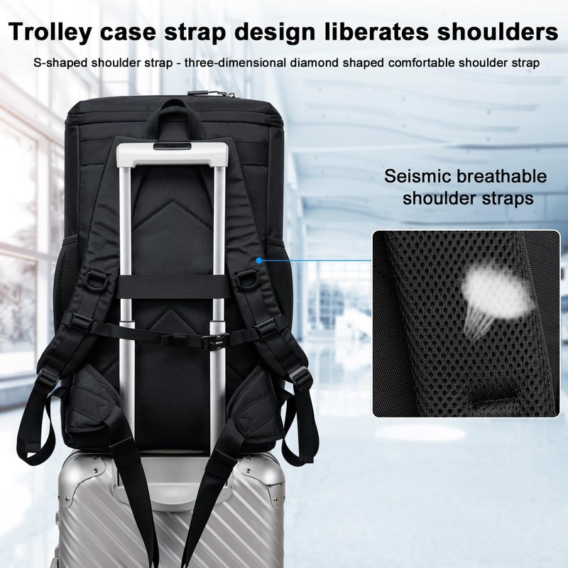 - 【Large Size and Capacity】:This travel backpack size is 21.6*14.1*7.8 inches, the storage capacity is not less than 40L. The backpack with a main compartment and a 17 inch laptop compartment, it has independent pockets inside, in which small items can be easily stored, make your items organized and easier to find, and the backpack can be fixed on the trunk rod or can be carried by hand.