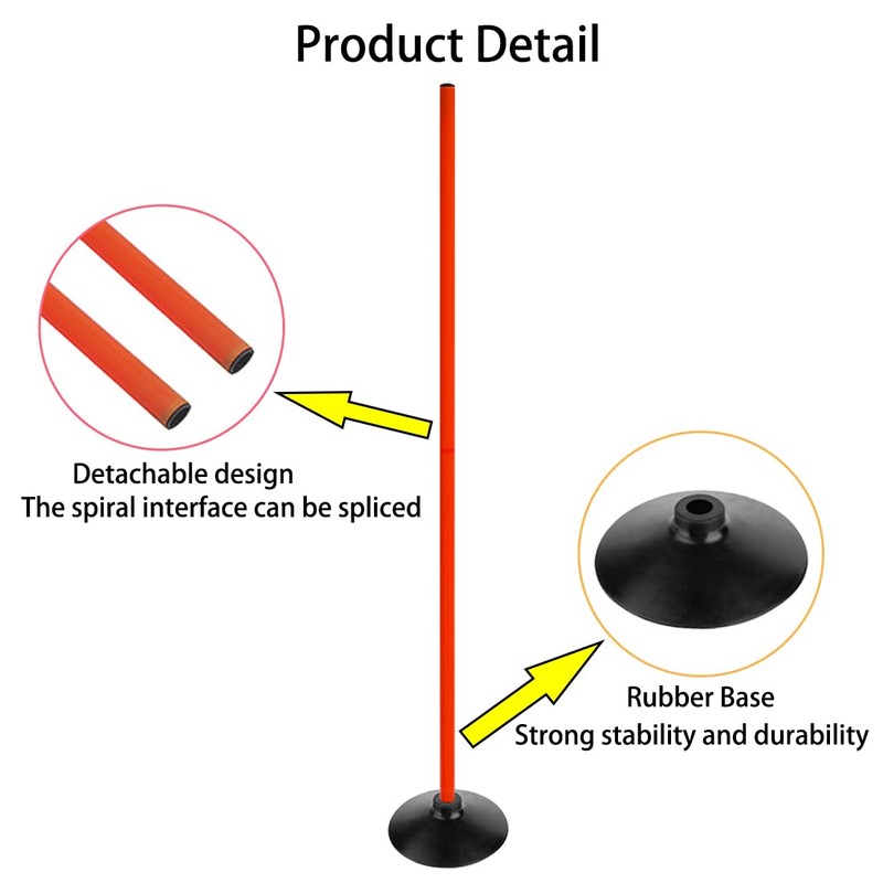 - The soccer agility pole is made of PVC material, good toughness, not easy to damage. The training poles are brightly colored, making them easy to spot even from a distance or in extreme weather.