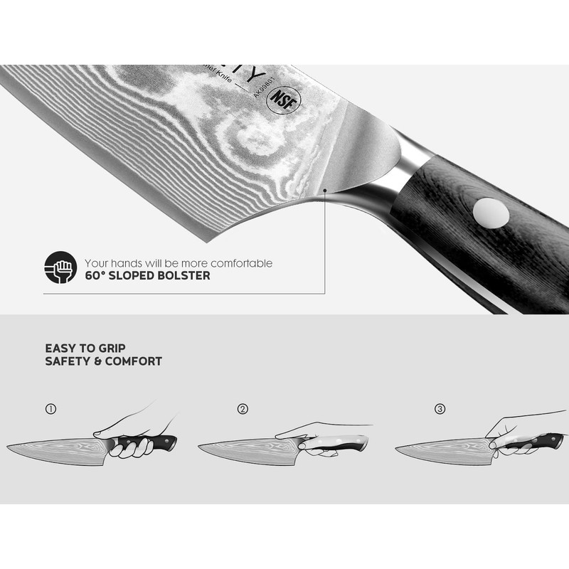 - ๐๐๐ ๐๐๐๐๐ ๐๐๐๐๐๐๐๐๐: Investing in a Damascus chef's knife means investing in a kitchen knife that will last a lifetime. ASETY knives have obtained NSF certification, ensuring both quality and food safety. Rest assured, any issues will be promptly resolved under our lifetime warranty.