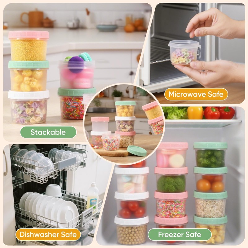 - HIGH-QUALITY FOOD GRADE MATERIAL: Our reusable plastic containers with lids are made of premium food-grade PP-5 plastic. The food storage container is BPA-free and odorless. This small food jar can safely store your favorite foods, including soups, jams, snacks, yogurt, etc.