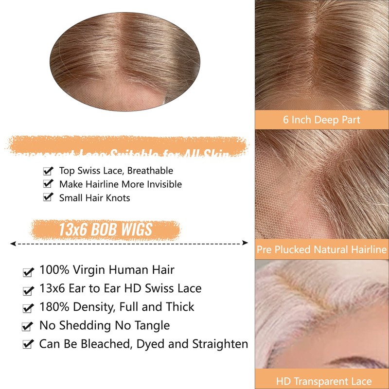 - 【Easy to Install Bob Wig Human Hair】:180% Density Full 13x6 Deep Part Frontal Glueless Wigs Blonde Human Hair Pre Plucked With Big Excess Hairline Edges Easy To Tint, Thick Volume Colored Grey Wig Not See Through, Bob Wig Wont Show Tracks , Perimeter Even Cut Length