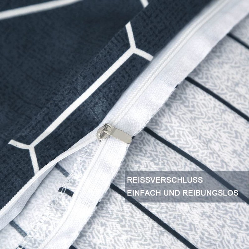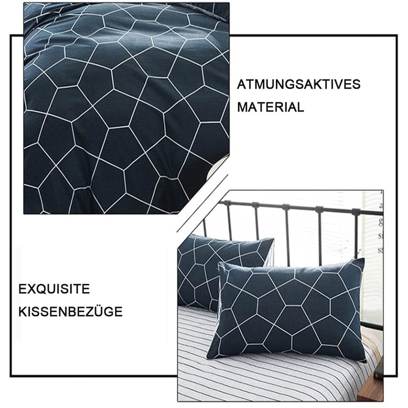 AShanlan Bed Linen Set, 135 x 200 cm, 2-Piece, Blue / White Duvet Cover, Modern Geometric Hexagon Pattern Striped Reversible Bed Linen, 100% Microfibre, with Zip, Pillowcase 80 x 80 cm, Navy Blue