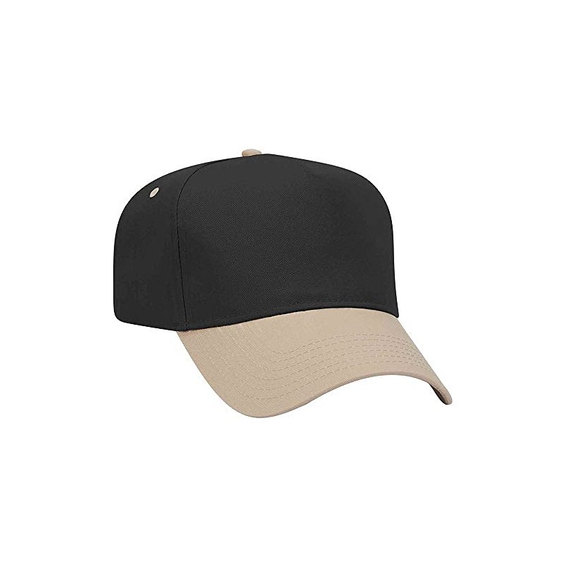 Ashen Fane 5 Panel Solid Cotton Twill Pro Style Mid-Profile Golf Cap, KHA Blk